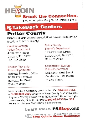 Potter County Drug & Alcohol Program, Roulette Office 1-800-800-2560
